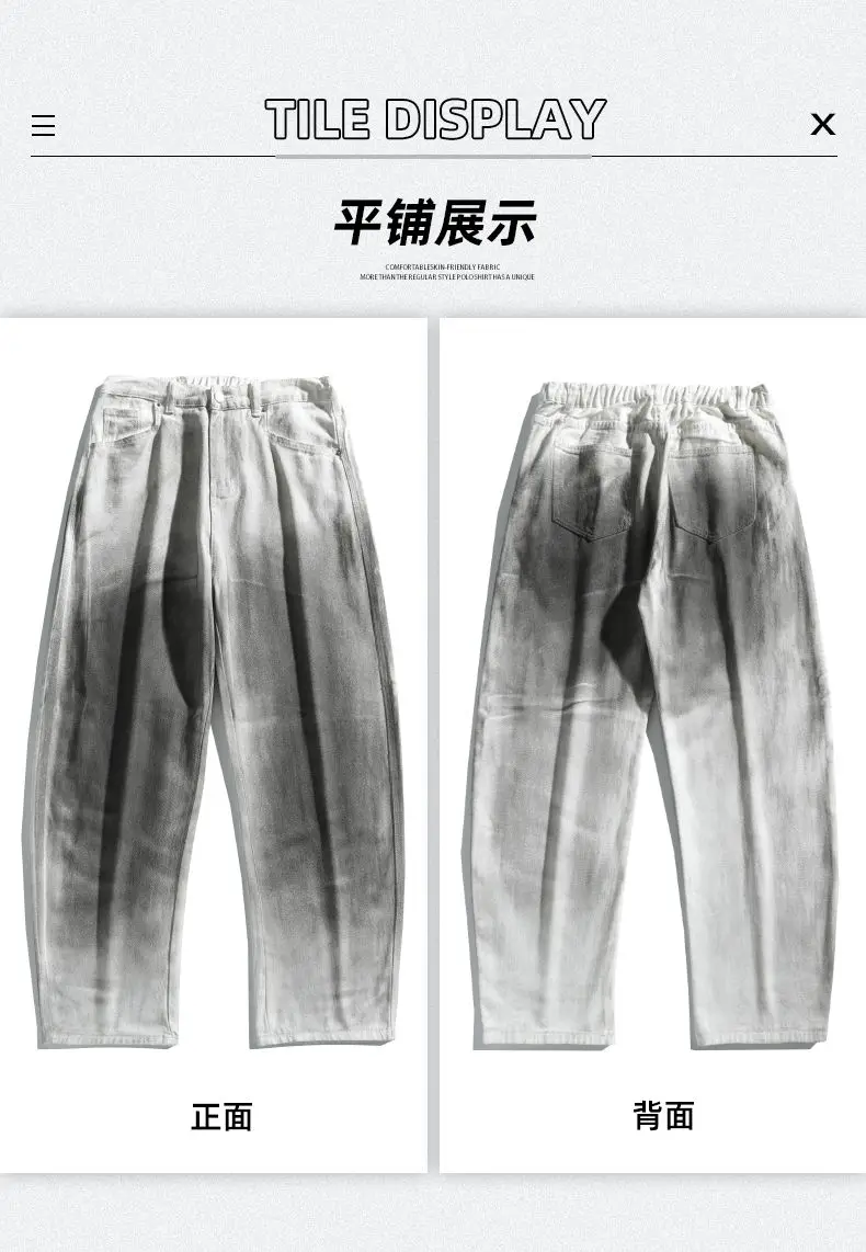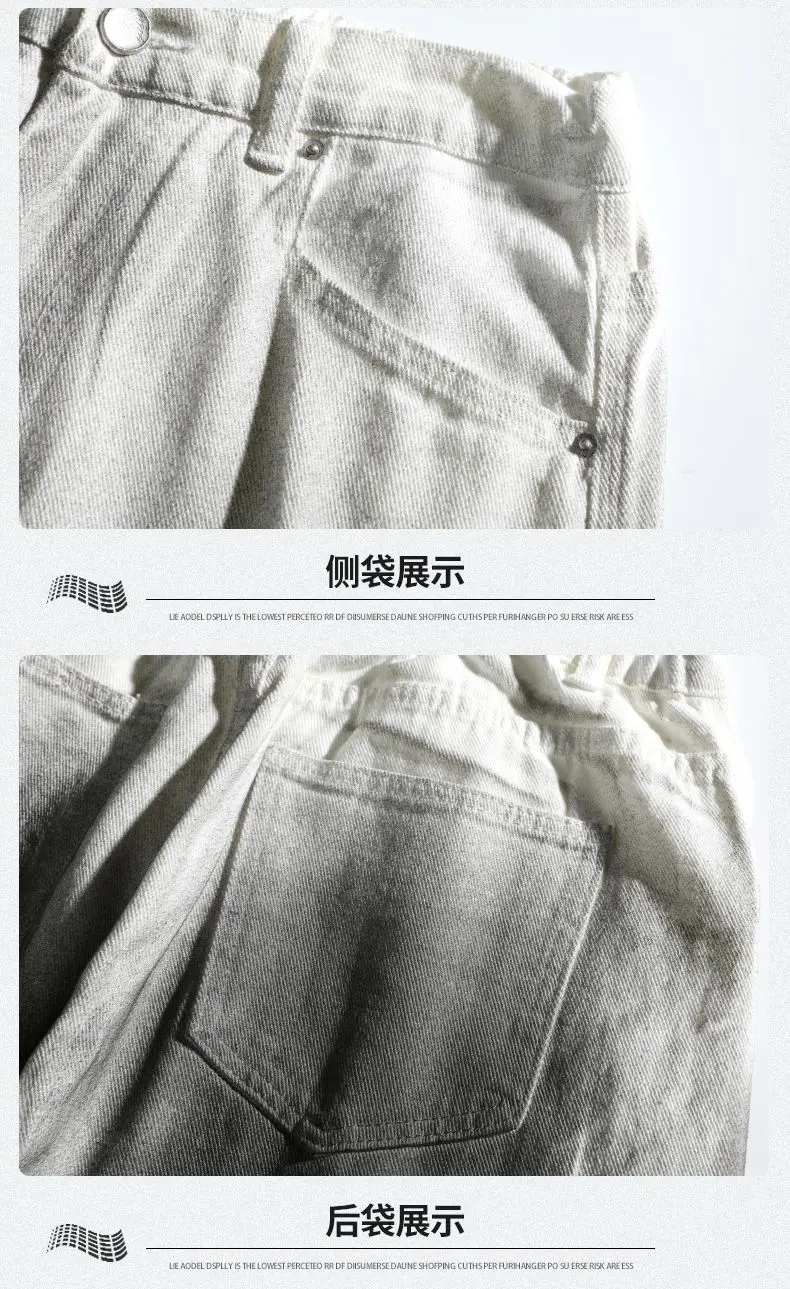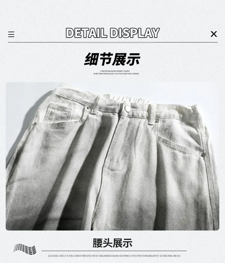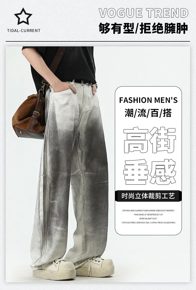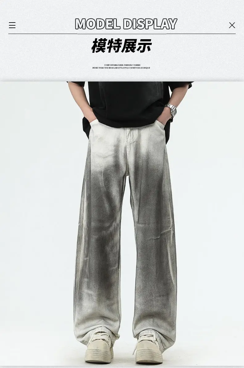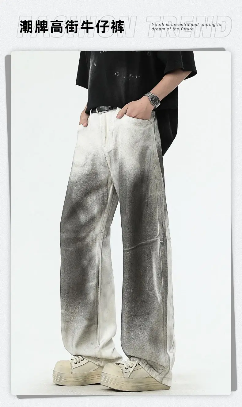 Men'S Street Style Simple Casual White Jeans Loose Straight Leg Wide Leg plus Size Wash Dirty Trendy Casual Versatile Long Pants