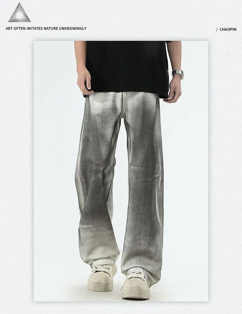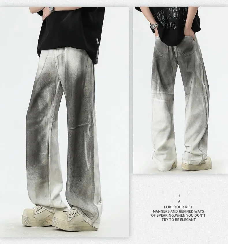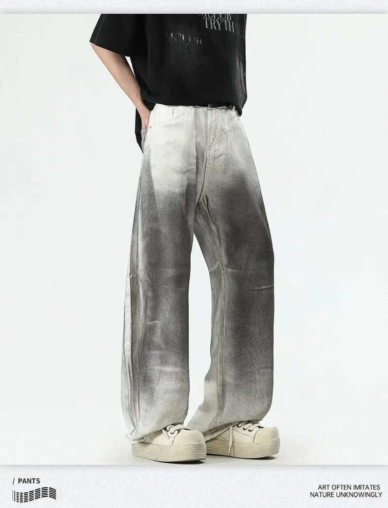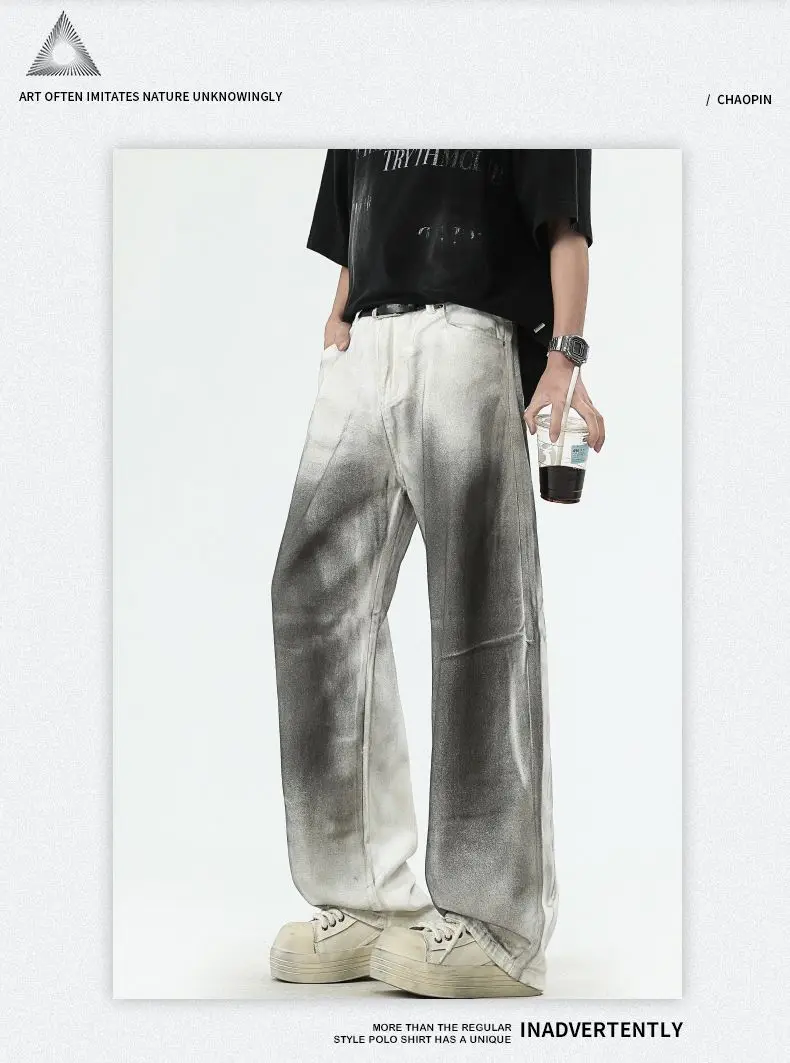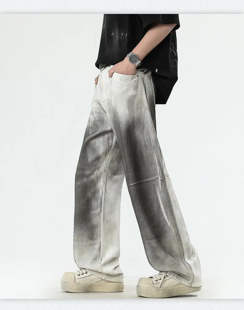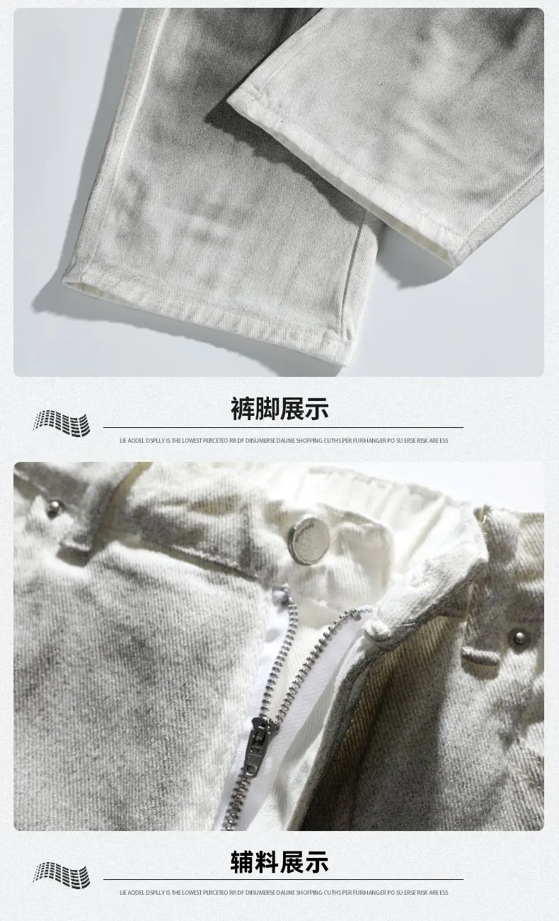 Men'S Street Style Simple Casual White Jeans Loose Straight Leg Wide Leg plus Size Wash Dirty Trendy Casual Versatile Long Pants
