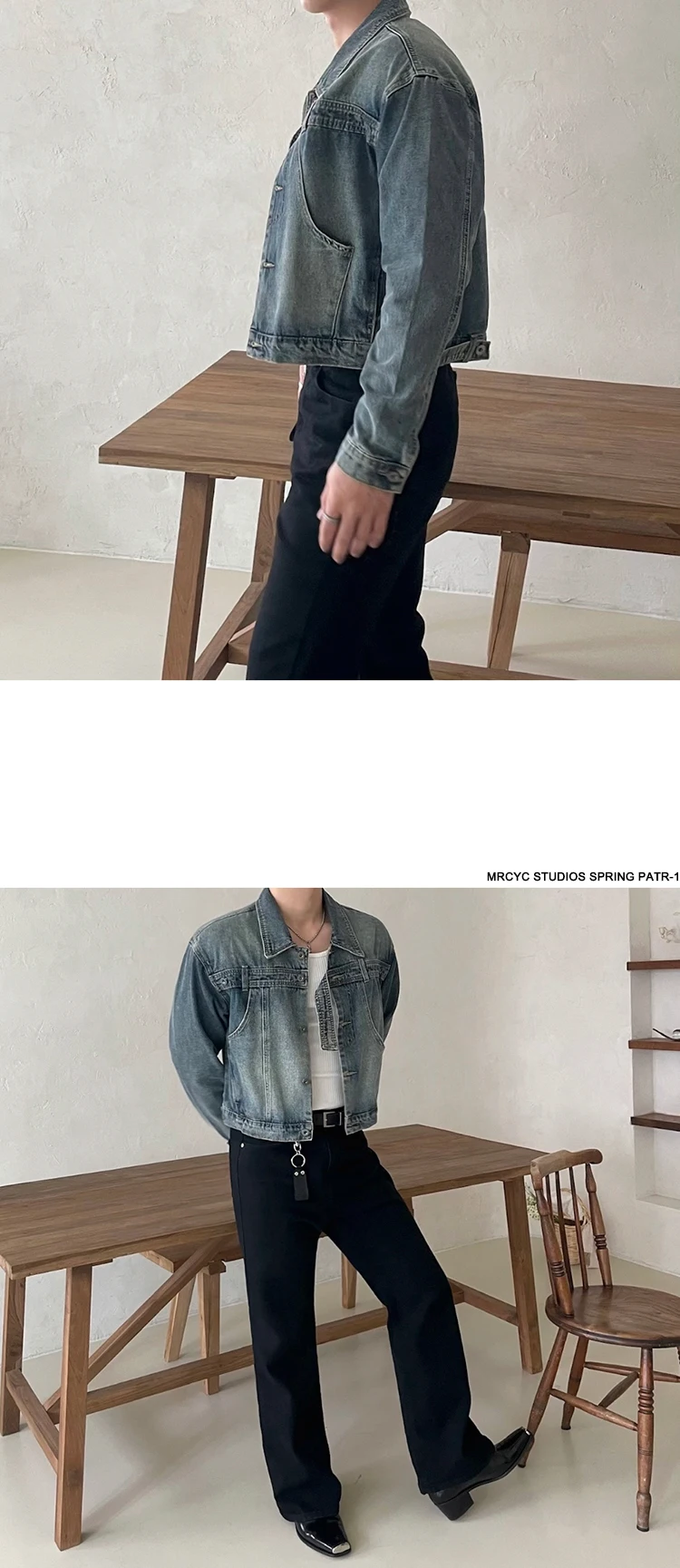 Embrace the classic American retro look with this water-washed denim jacket, perfect for autumn wear.